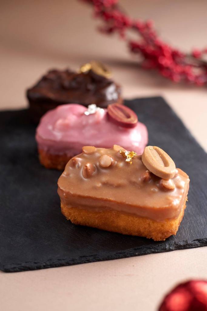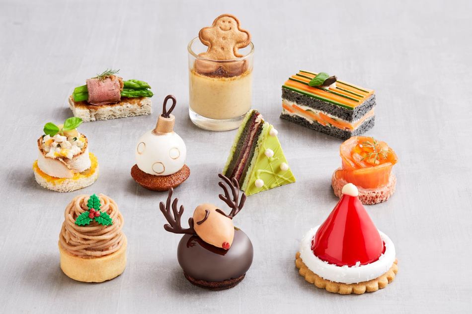 The savoury treats include Foie Gras au Torchon on Brioche, Apple Chutney, Smoked Salmon and Horseradish Mascarpone Mousse in Beetroot Basket, Pistachio and Cranberry Cheese Ball and Multigrain tart shells filled with Crab and Eggs Mayo.