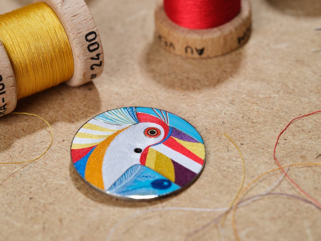 Its dial associates two highly demanding and remarkable crafts that took five years to perfect: multicoloured silk threads, highlighted by the intensity of the miniature enamel. The unique and exclusive Hermès silk thread technique was inspired by a kimono weaving workshop in Japan. Chosen for its vibrant design, the Amazonian bird is composed of 500 individually assembled threads and is brought to life by a full week of fine craftsmanship.