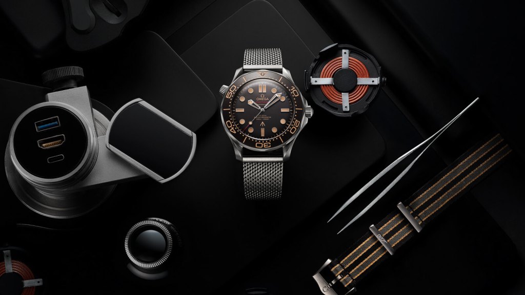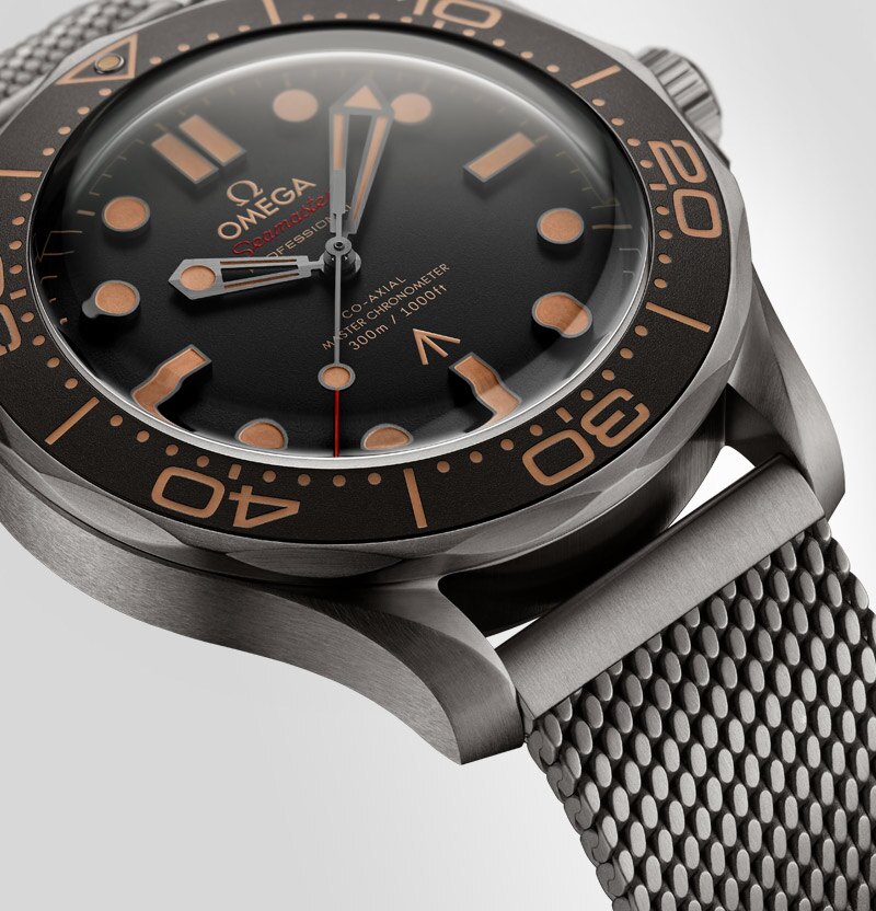 The OMEGA Seamaster DIVER 300M CO‑AXIAL MASTER CHRONOMETER 42 MM007 Edition is identical to 007’s watch in No Time To Die, with strong yet lightweight Grade 2 Titanium, a brown tropical aluminium bezel ring and dial.