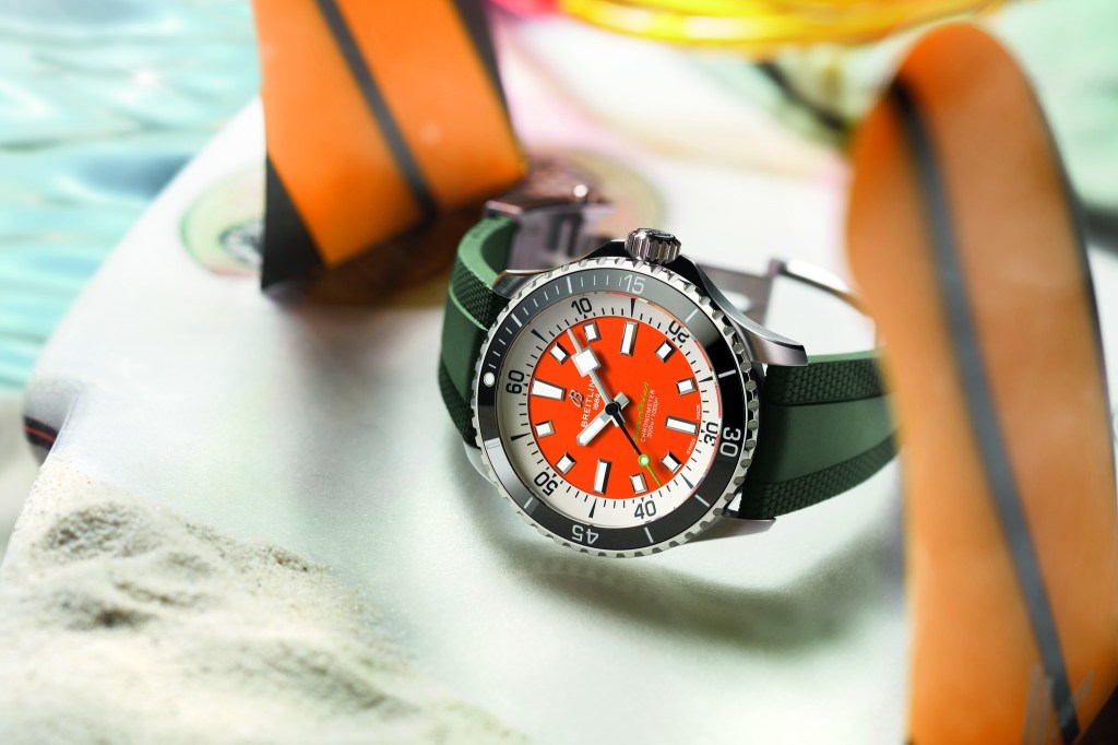 “I’ve been co-creating watches with Breitling for the past few years but this one, in particular, is very personal. It’s inspired by my late father, who had a watch with an orange face that he used to wear surfing for as long as I can remember. The green and orange together is a colour scheme I used to like for the airbrushes on my boards growing up. That combination has always stuck with me.”