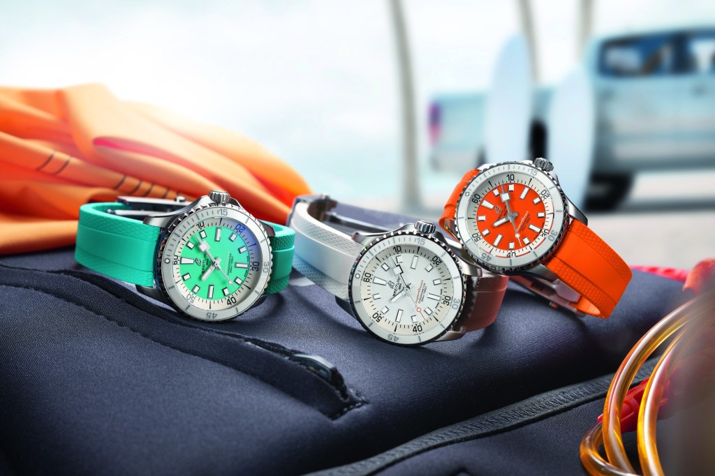 Breitling recently redesigned its sporty sea watch, the Breitling SuperOcean. The new line continues the minimalist design of the original SuperOcean Slow Motion from the 1960s and 1970s while incorporating contemporary features and a vibrant colour scheme.