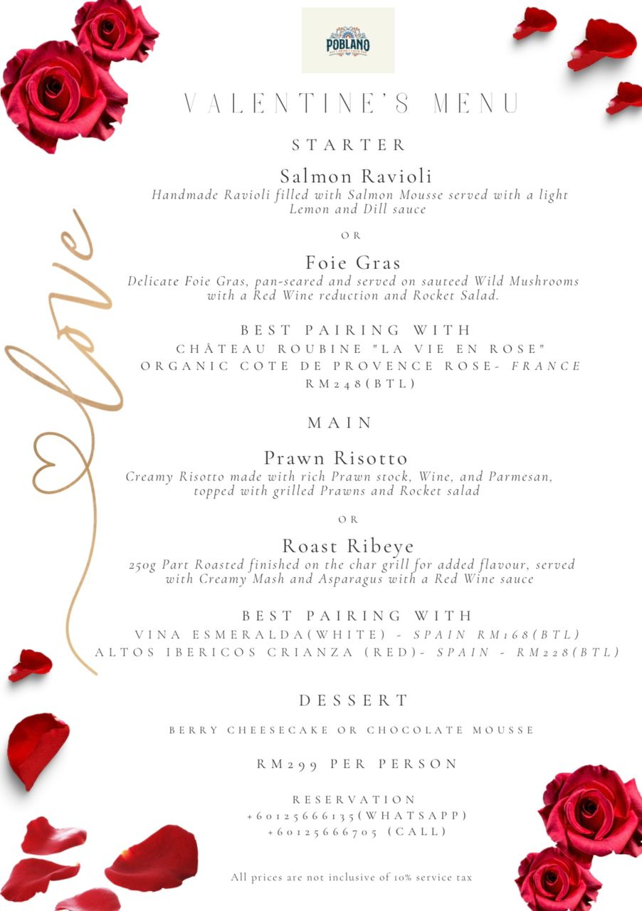 Poblano KL Valentine’s Day 2023 Menu