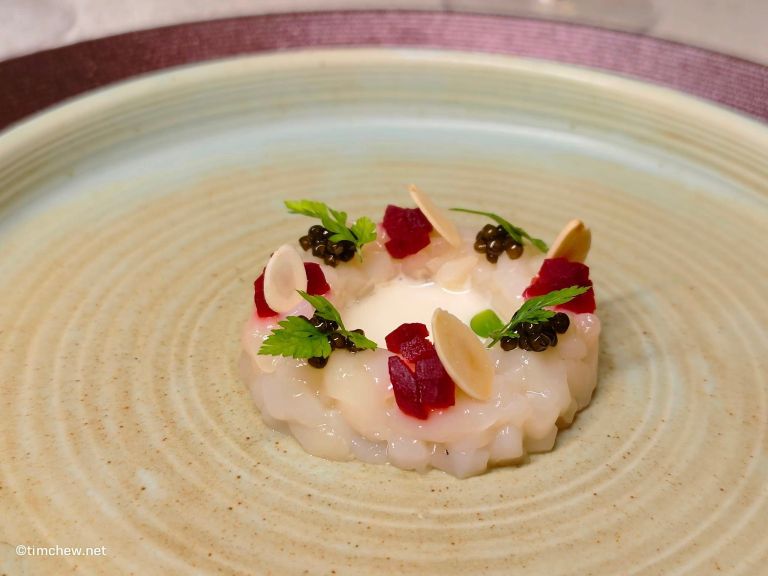 The carefully curated new menu showcases Chef Heng’s culinary expertise through a selection of meticulously crafted dishes. Appetizer selections begin with the exquisite Hokkaido Scallop Tartare (RM88), a delicate preparation featuring the freshest scallops paired with Ajoblanco (a traditional Spanish chilled almond soup) and crowned with luxurious Oscietra caviar. The dish creates a harmonious balance between creamy and briny flavours, setting an impressive tone for the dining experience.