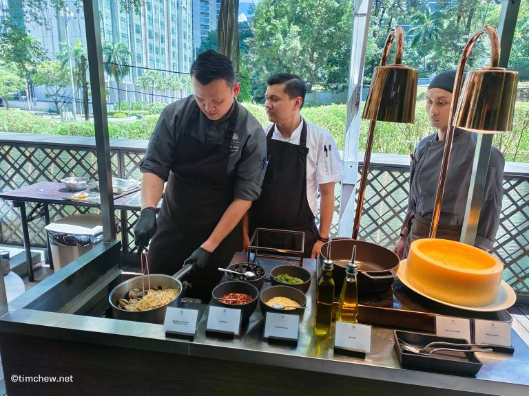 The Barbeque Station outside offers a tantalising selection of River Lobster, Scallop, Razor Clams, and Lamb Rack, grilled before your eyes. The Pasta Station features creamy Macaroni & Cheese finished n a cheese wheel, and aromatic Spaghetti a la Vongole, cooked with garlic and parsley.