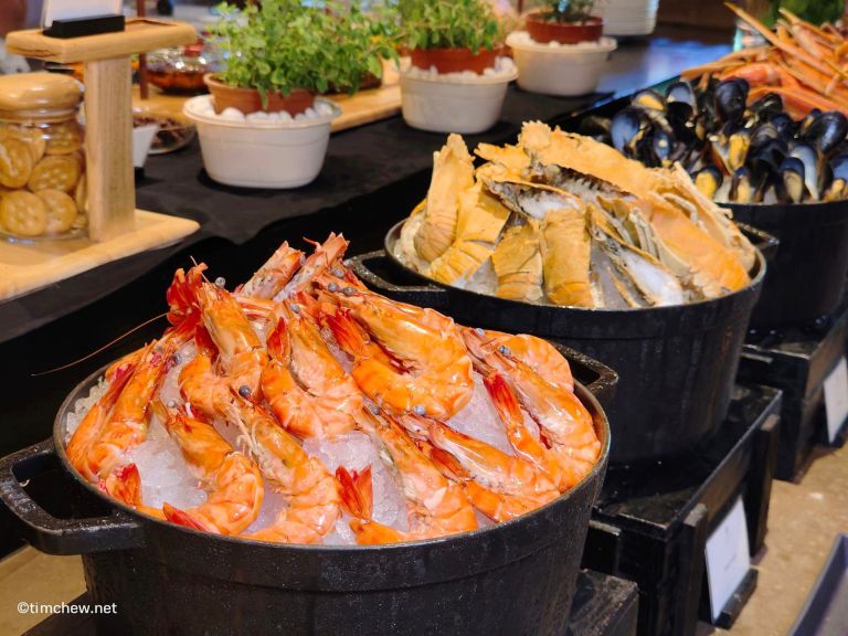 The Seafood Counter boasts an impressive array of fresh seafood, including succulent Tiger Prawns, tender Slipper Lobster, and meaty Alaskan Queen Crab, served with an assortment of flavourful sauces like Nam Jim and Hollandaise.