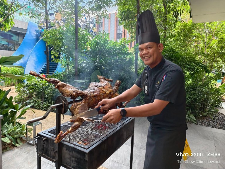 The halal-certified kitchens at M World Hotel will present a diverse bazaar experience, with stalls offering refreshing local salads, ‘ulam-ulaman’, seafood on ice, and traditional sambal. Guests can also enjoy Kebab Arab-style, ‘Roti John’, ‘Lontong’ and ‘Sambal Udang’, ‘Aneka Ikan Bakar’ of grilled fish, ‘Otak-Otak’ and ‘Satar’, Fried Noodles, ‘Sup Periuk’, ‘Gulai Kawah’, ‘Satay’, and ‘Nasi Briyani Kambing’. International options include Seafood Tempura, Chilli Flower Crabs, Peking Duck, Western BBQ Grill, Pasta Counter, and Claypot Fish Head Curry. The highlight of the evening will be ‘Kambing Golek,’ a marinated, spiced whole lamb grilled live and carved into tender slices.