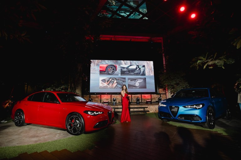The vehicles feature the brand’s Alfa Link suspension system and near 50:50 weight distribution, emphasising handling dynamics that Alfa Romeo has historically been known for. Exterior design elements include the signature “Trilobo” shield grille, full-LED adaptive matrix headlights, 19-inch wheels, and red Brembo brake callipers.