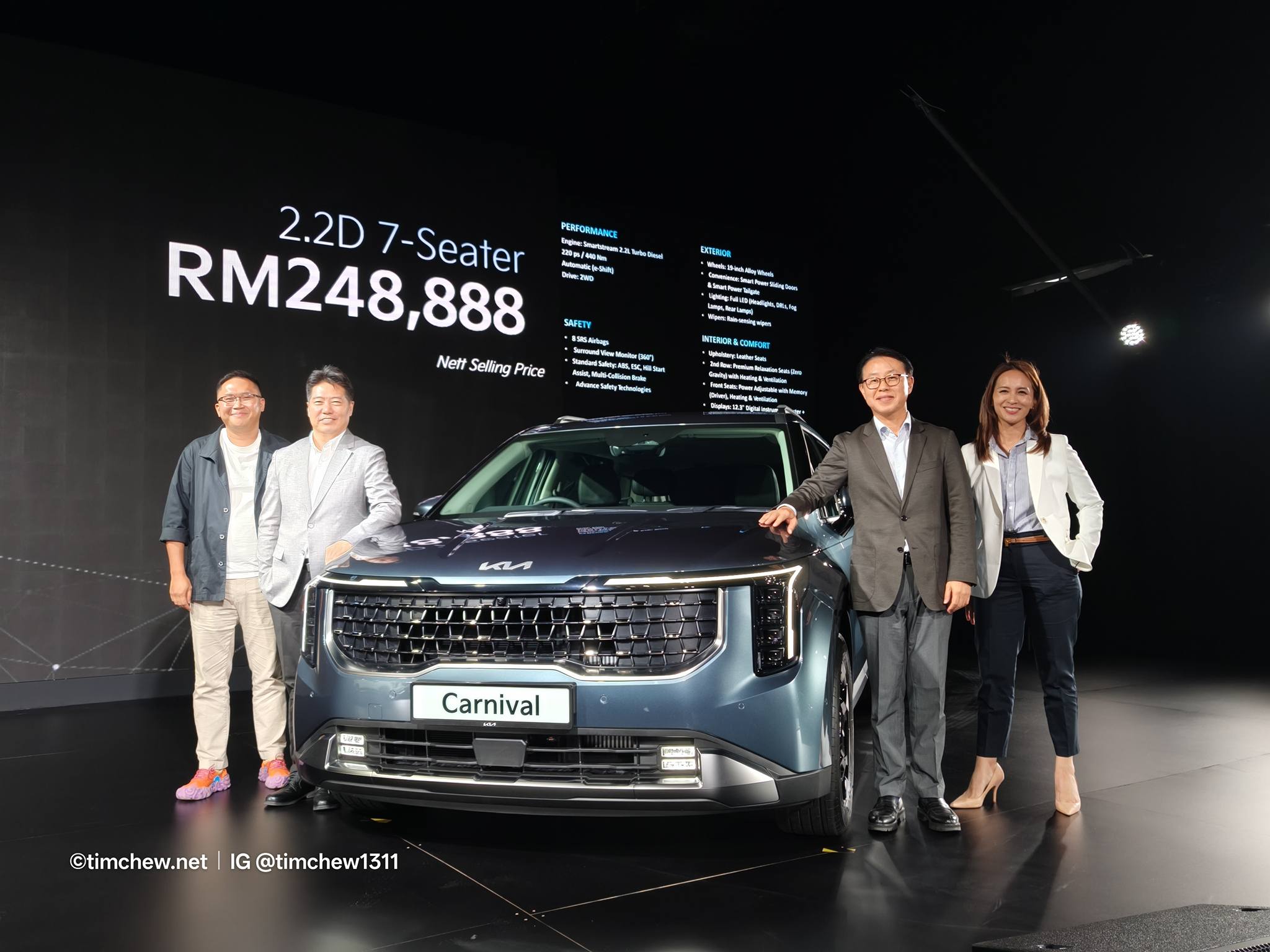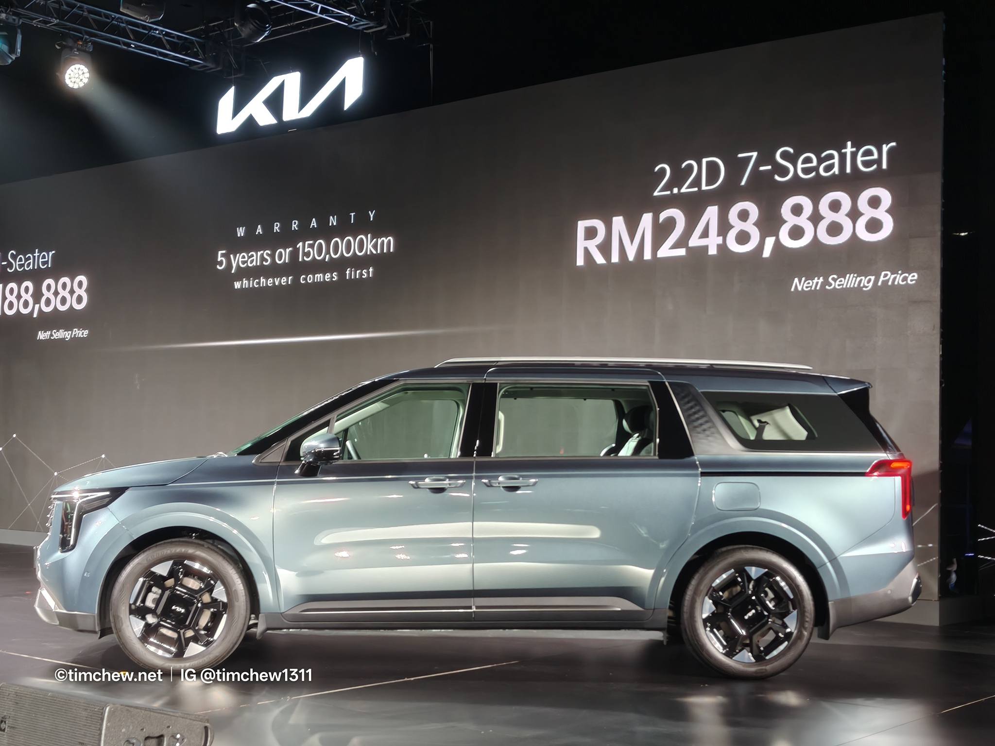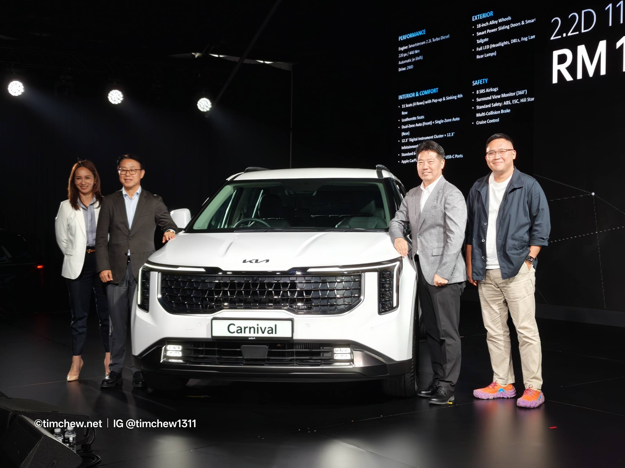 The new Carnival is offered in Malaysia in two locally assembled (CKD) configurations: a 2.2D 11-seater priced from RM 188,888 and a 2.2D 7-seater from RM 248,888, both excluding insurance and road tax for Peninsular Malaysia.