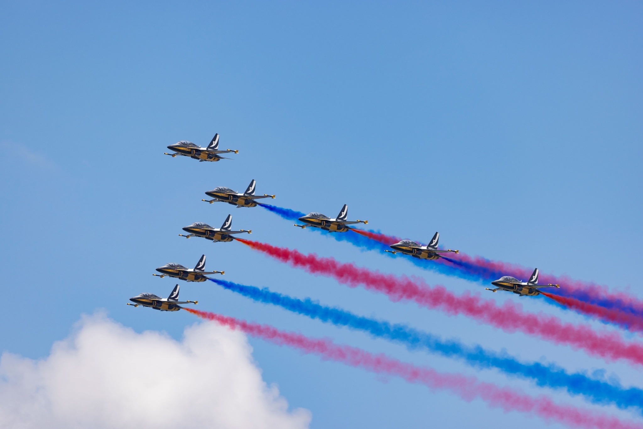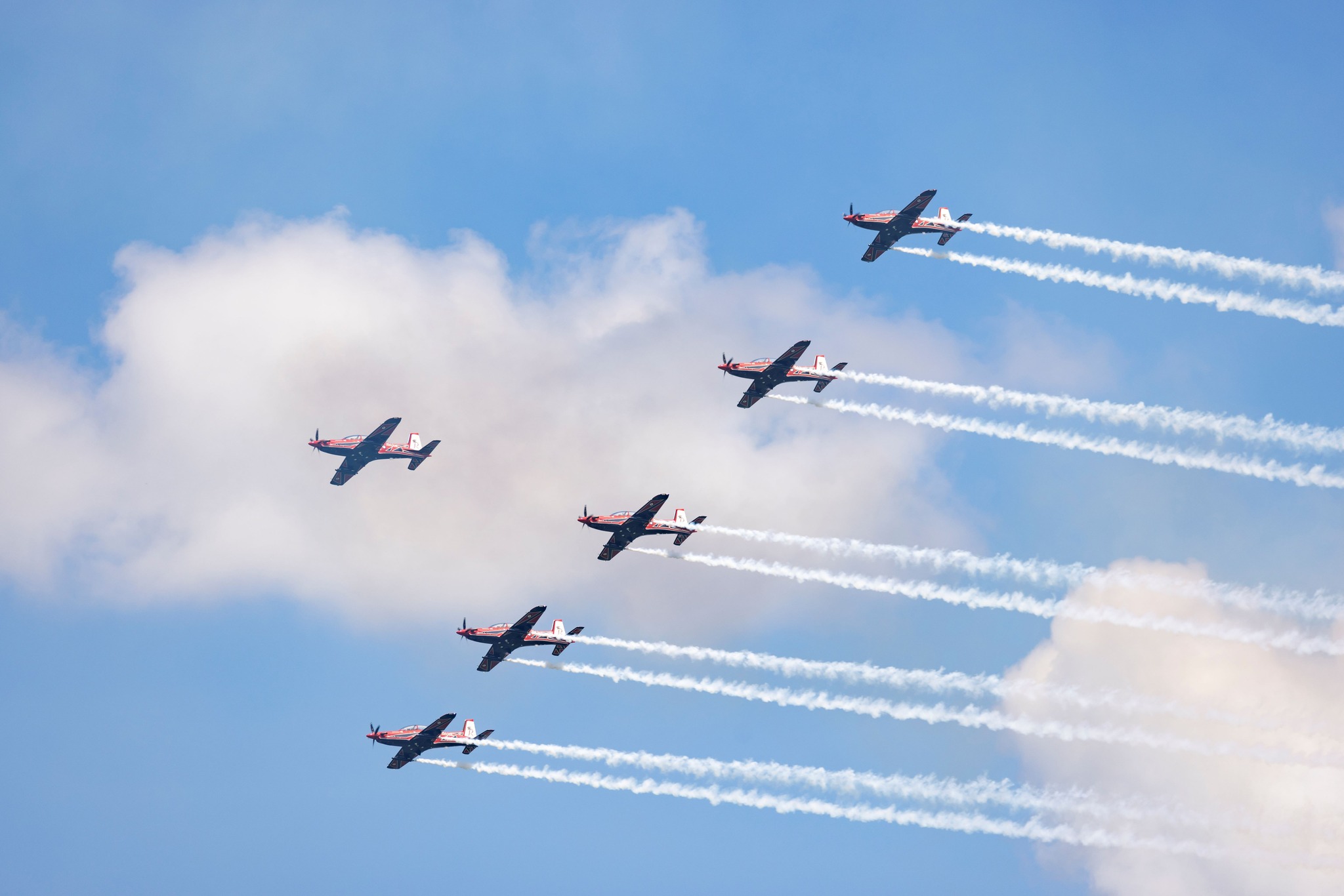 Other military acts include the Indian Air Force’s Sarang team, masters of synchronized HAL Dhruv helicopter formations; Indonesia’s Jupiter squadron in their KT-1B trainers; and China’s Bayi Aerobatic Team, flying Chengdu J-10C fighters in razor-sharp patterns.
