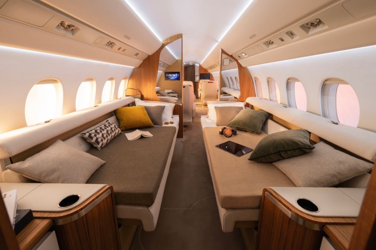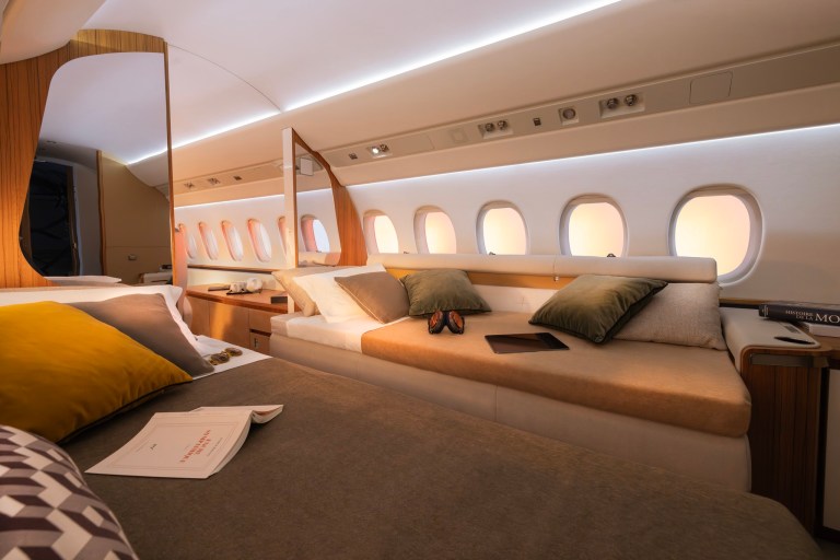 The cabin will measure 6 feet 8 inches (2.03 meters) in height and 9 feet 1 inch (2.77 meters) in width—approximately 8 inches wider and 2 inches taller than the widest and tallest purpose-built business jet currently flying. With a cabin volume of 2,780 cubic feet, the ultra-spacious cabin has been compared to a “flying penthouse”.